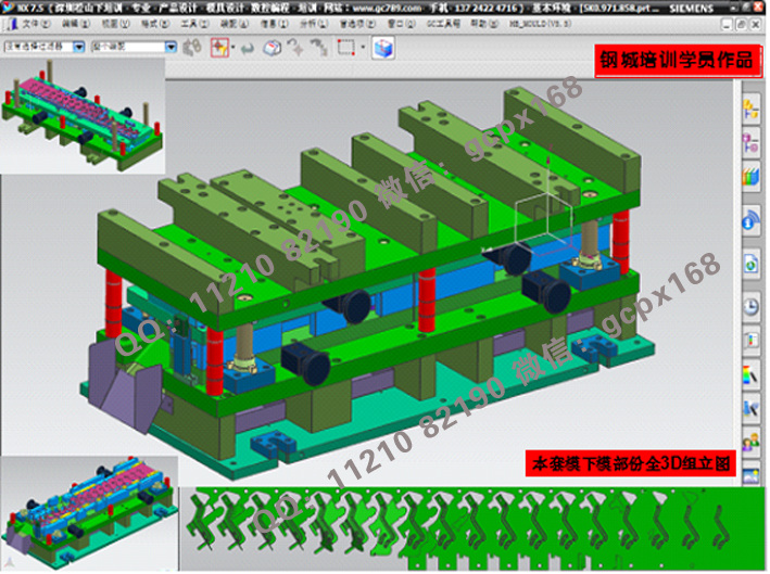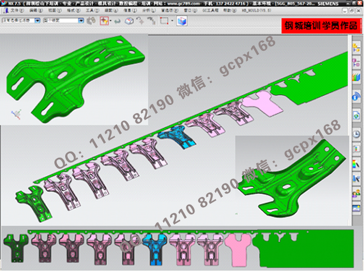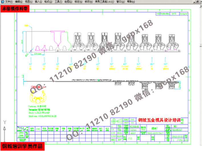(11) 連續(xù)模設(shè)計實操:綜合理論知識,運用實際的模具設(shè)計流程(各類圖面處理>模架繪制>細部結(jié)構(gòu)設(shè)計>零件圖繪制>出圖),真正實現(xiàn)與工廠的無縫結(jié)合;